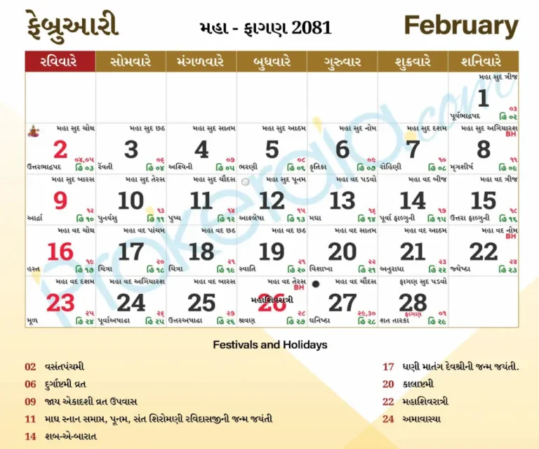 ગુજરાત કૅલેન્ડર 2025: વિકર્મ સંવત 2081 સંપૂર્ણ માહિતી